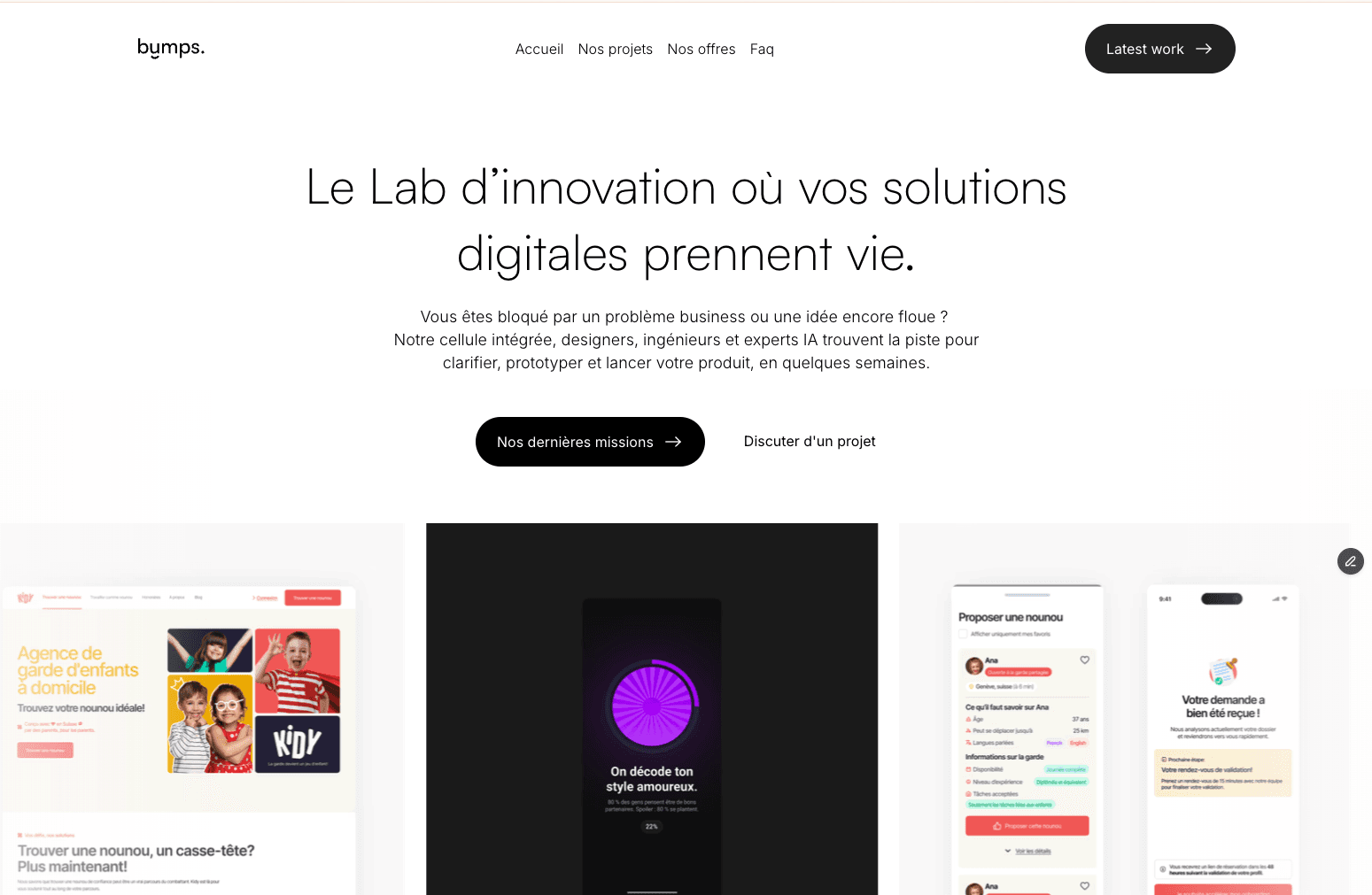 Contrairement à d’autres agences qui exécutent des specs figées, Bumps challenge votre idée, la structure, la teste, puis la développe intelligemment.