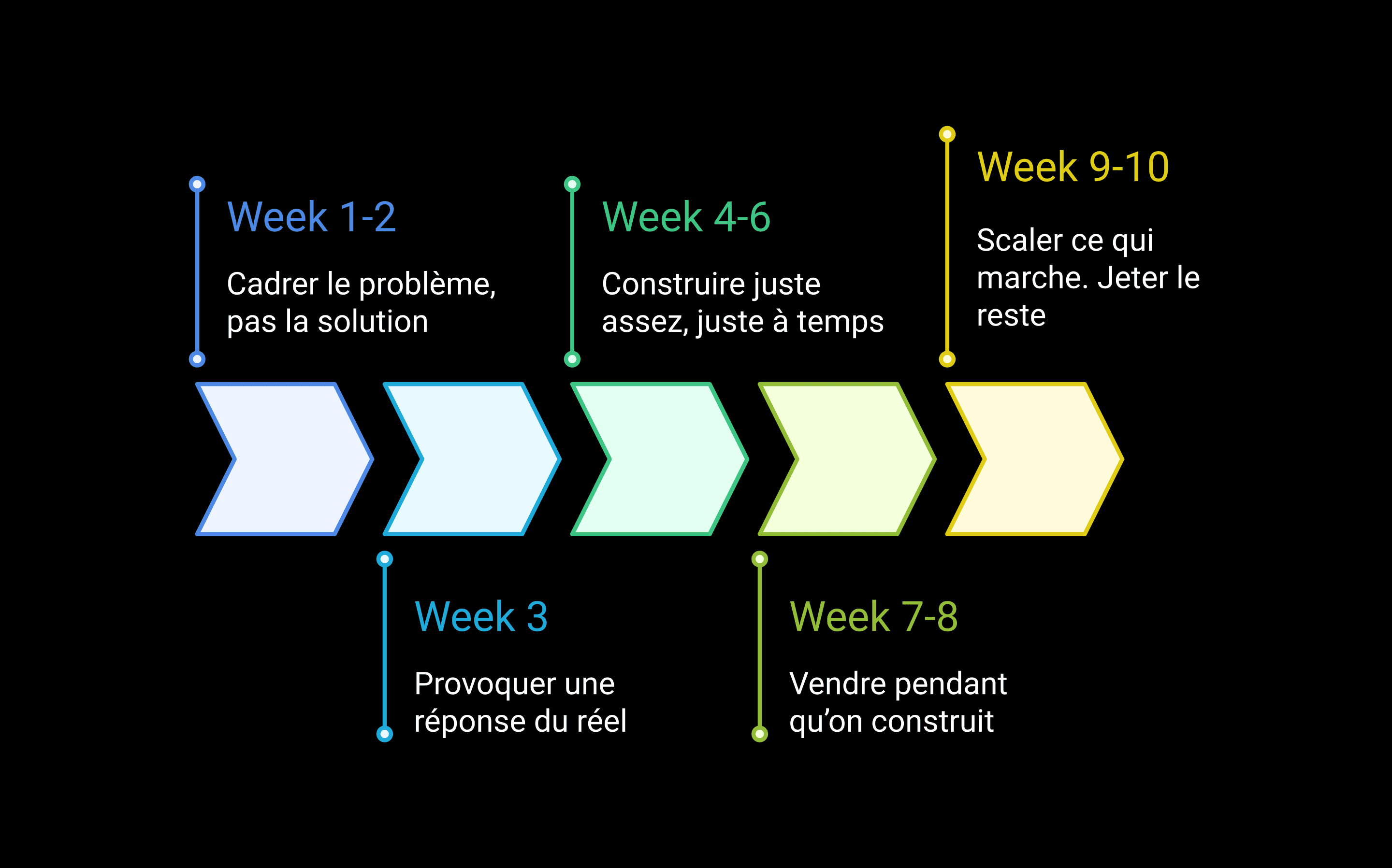 Les deux premières semaines ne sont pas là pour “préparer la prod”. Elles servent à désapprendre. À sortir du fantasme. À comprendre pourquoi les gens achèteraient. Ou pourquoi ils n’achèteraient pas.